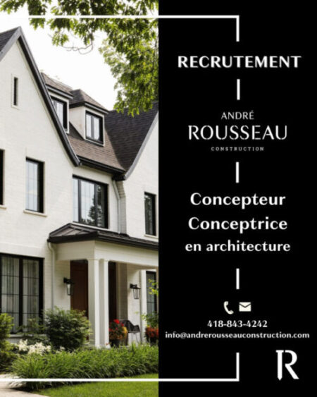 Si ce poste vous intéresse, veuillez faire parvenir votre curriculum vitae et portfolio à amelieroy@andrerousseauconstruction.com .