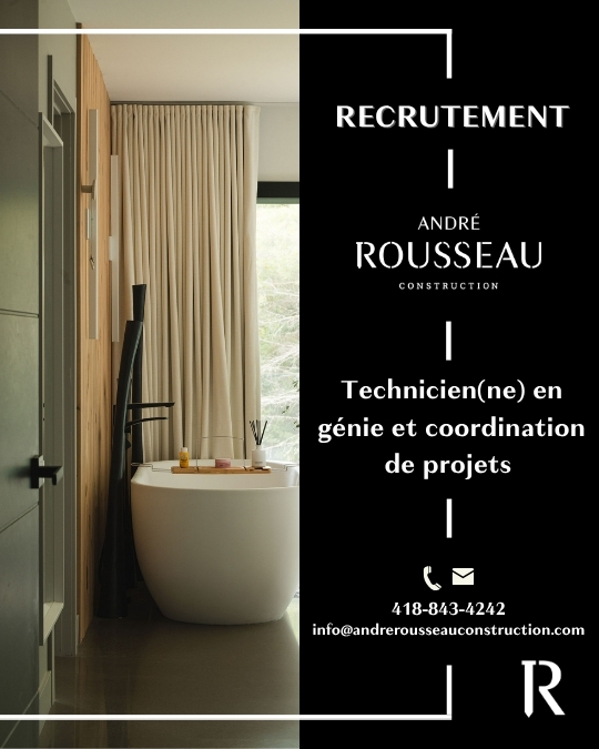 Nous créons un nouveau poste au sein de notre équipe : un(e) technicien(ne) en génie et coordination de projet qui appuiera directement notre chargé de projet et notre ingénieur dans les différentes étapes de nos chantiers résidentiels d’exception.